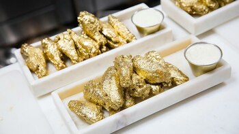 Son alitas de pollo que primero se ponen a marinar en manteca de coco, chipotle y miel durante 24 horas. Luego, se fríen y se espolvorean con copos de oro de 24 quilates. El plato puede tener diez, veinte o cincuenta piezas. El primero cuesta más de 45 dólares, el segundo asciende a 90 dólares y las 50 piezas se comercializan a mil dólares, con el agregado de una botella dorada del champagne "Ace of Spades", propiedad del famoso rapero Jay-Z.