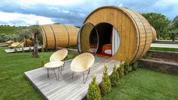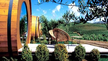 Barricas gigantes que imitan los toneles de madera empleados para la crianza de vino. No se trata de barricas reales, pero su construcción contempla todos los detalles para ofrecer a la imaginación todo lo que necesita. Y el interior de estas barricas de vino en realidad esconde habitaciones lujosas, rústicas y elegantes.