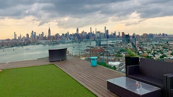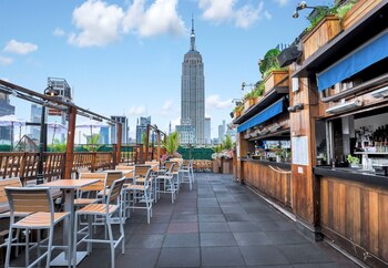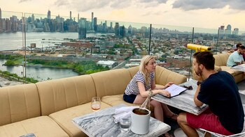 West light. La última opción es una de las mejores, ubicado en el barrio de Williamsburg en Brooklyn al otro lado del río, es una terraza con una increíble vista hacia Manhattan. Cuenta con dos pisos, el de más arriba es un ambiente relajado con césped artificial, pufs repartidos y metegol para jugar; el piso de abajo es más formal puedes sentarte en alguna de las mesas y disfrutar de la gastronomía. Se ubica en el piso 22 de The William Vale Hotel. Los horarios son variados: fines de semana suele abrir desde el mediodía y los días de semana a partir de las 4 PM hasta medianoche.