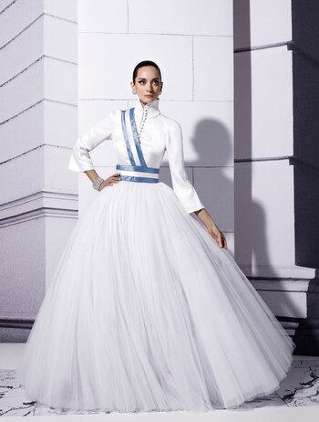 -Convocaron a diez diseñadores y cada uno tenía que recrear una década, a mi me tocó la del 50’. De alguna manera los iconos eran Evita y Dior, mi interpretación y forma de sintetizar fue esa. Pensé en Evita como en Santa Eva, como en el hada madrina de los pobres, en la femineidad, en la elegancia y todo eso que representa. Sentía que se podía ver a Eva, a Dior y a Ramírez.