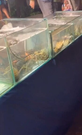 De mar, el que más predomina es el cangrejo, el salmón , las langostas, los mariscos. Podes hasta comprarlos vivos. Los venden en recipientes con agua, los elegís y te los llevas a tu casa. También vi en algún menú, la famosa sopa de murciélago, tan conocida ahora con el tema del coronavirus.