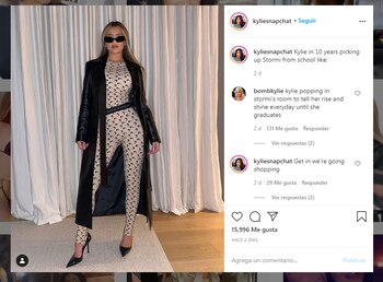 La más joven del clan Kardashian lo usó con un tapado de cuero negro, anteojos, y stilettos....todo eso para ir a buscar al colegio a su hija Stormi, según escribió en sus redes.