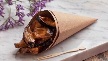 - Lavar con abundante agua la berenjena y córtala en rodajas.