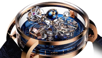 La reconocida marca neoyorquina Jacob & Co. creó un sorprendente reloj. Se trata de una clase de astronomía en miniatura...dentro del aparato. El ingenio y el lujo con el que está construido este Tourbillon hay que pagarlo.