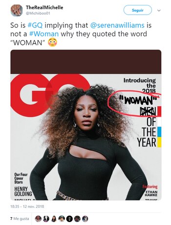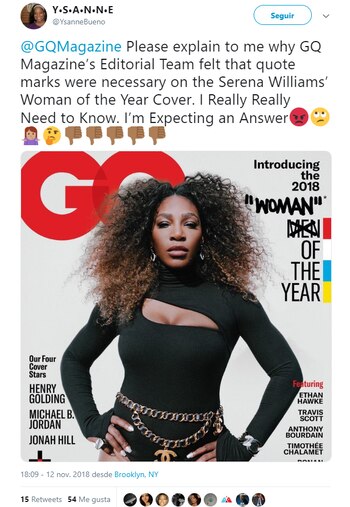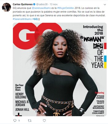 La portada especial de la revista GQ que reconoce a las personalidades de 2018 generó polémica en redes sociales y en todo el mundo porque en la versión que resalta a la tenista Serena Williams la palabra "mujer" aparece entre comillas y tacha la palabra "man", cuestionando el género de la estadounidense.