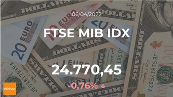 Mal día para el FTSE MIB IDX, que inaugura la sesión del miércoles 6 de abril con descensos del 0,76%, hasta los 24.770,45 puntos, tras la apertura. En relación a los cambios de este día respecto de días pasados, el FTSE MIB IDX encadena dos sesiones seguidas de números negativos.
