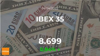 Jornada en positivo para el IBEX 35, que acabó la sesión del jueves 14 de abril con ascensos del 0,94%, hasta los 8.699 puntos. El IBEX 35 anotó un volumen máximo de 8.756,80 puntos y la cifra mínima de 8.606 puntos. El rango de cotización para el IBEX 35 entre su punto más alto y el más bajo (máximo-mínimo) durante este día se situó en el 1,72%.