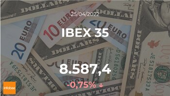 Jornada bajista para el IBEX 35, que comienza la jornada del lunes 25 de abril con bajadas del 0,75%, hasta los 8.587,40 puntos, tras la apertura. Si confrontamos la cifra con días pasados, el IBEX 35 acumula dos jornadas seguidas en dígitos negativos.