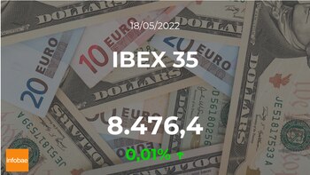 Sesión continuista para el IBEX 35, que acabó el día del miércoles 18 de mayo con una variación del 0,01%, hasta los 8.476,40 puntos. El IBEX 35 llegó a un volumen máximo de 8.546,40 puntos y un mínimo de 8.454,80 puntos. El rango de cotización para el IBEX 35 entre su punto más alto y el más bajo (máximo-mínimo) durante este día se situó en el 1,07%.