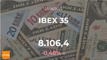 Día negativo para el IBEX 35, que acabó el día del jueves 23 de junio con ligeras descensos del 0,48%, hasta los 8.106,40 puntos. El IBEX 35 anotó un máximo de 8.172,90 puntos y un mínimo de 8.034,30 puntos. El rango de cotización para el IBEX 35 entre su punto más alto y el más bajo (máximo-mínimo) durante este día se situó en el 1,7%.