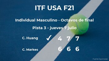 Chih Chi Huang, canadiense sorprendió al ganar en los octavos de final del torneo de Waco en tres horas y dieciséis minutos por 4-6, 7(7)-6(5) y 7(7)-6(3) a Colin Markes, tenista estadounidense y cabeza de serie número 4. Tras este resultado, Huang se hace con el puesto para los cuartos de final del torneo de Waco.