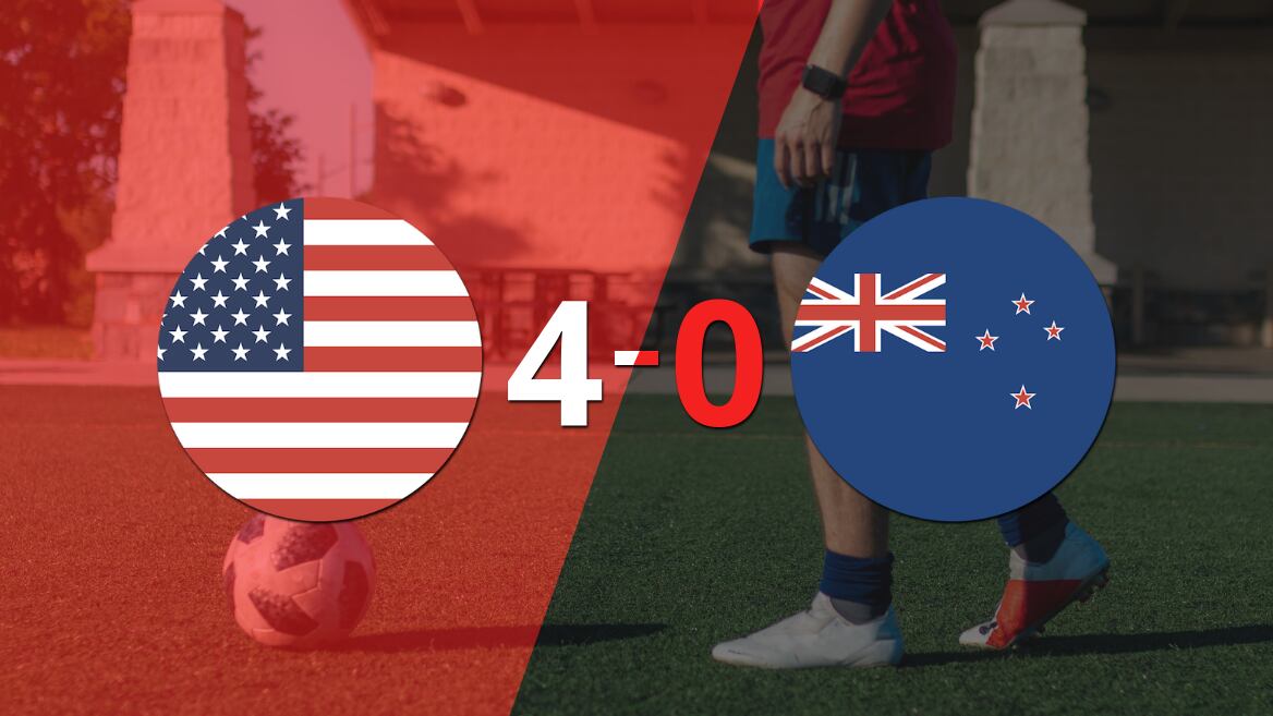 Estados Unidos marcaron la diferencia con una goleada en el partido que jugaron este martes en el Mundialista de Mendoza ante Nueva Zelanda, en el marco de los octavos de final 1 del torneo FIFA - Mundial Sub 20 - Argentina 2023. Owen Wolff (13' 1T), Cade Cowell (15' 2T), Justin Che (29' 2T) y Rokas Pukstas (36' 2T) fueron los autores del aplastante triunfo del equipo local.