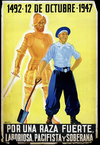 Su obra civilizadora cumplida en tierras de América no tiene parangón en la historia. Su empresa tuvo el signo de una auténtica misión. Ella no vino a las Indias ávida de ganancias y dispuesta a volver la espada y marcharse una vez exprimido y saboreado el fruto. Llegaba para que fuera cumplida la hermosa realidad del mandato póstumo de la reina Isabel de atraer a los pueblos de Indias y convertirlos al servicio de Dios […] Traía para ello la buena nueva de la verdad revelada, expresada en el idioma más hermoso de la Tierra. Venía para que esos pueblos se organizaran bajo el imperio del derecho y vivieran pacíficamente. Su obra civilizadora cumplida en tierras de América no tiene parangón en la historia. Es única en el mundo. Constituye su más calificado blasón y es la mejor ejecutoria de la raza, porque toda la obra civilizadora es un rosario de heroísmos, de sacrificios y de ejemplares renunciamientos. No aspiraban a destruir al indio, sino a ganarlo para la fe y dignificarlo como ser humano. Era un puñado de héroes, de soñadores desbordantes de fe. Como no podía ocurrir de otra manera, su empresa fue desprestigiada por sus enemigos, y su epopeya, objeto de escarnio, pasto de la intriga y blanco de la calumnia, juzgándose con criterio de mercaderes lo que había sido una empresa de héroes. Todas las armas fueron probadas: se recurrió a la mentira, se tergiversó cuanto se había hecho, se tejió en torno suyo una leyenda plagada de infundios y se la propaló a los cuatro vientos".