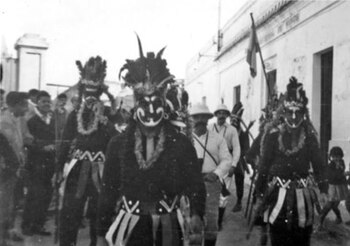 Con la conquista de América, los españoles trajeron esta práctica, el uso de las máscaras, cuyo sentido era el de burlarse de la gente en público, y de mojar al prójimo. Y todo lo que ello conlleva.
