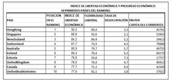 Recordemos que el Índice de Libertad Económica incluye ítems como respeto por los derechos de propiedad, disciplina fiscal, flexibilidad laboral, carga impositiva, apertura comercial, eficacia judicial y otros rubros más. Es decir, es una combinación de calidad institucional y políticas económicas.