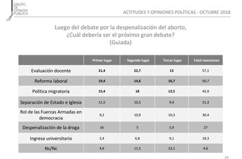 La última encuesta de GOP muestra que la reforma laboral, junto con la evaluación docente, están en el top de la opinión pública en Capital y Gran Buenos Aires luego del de la despenalización del aborto.