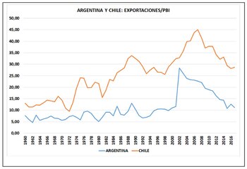 Comparando el modelo de apertura de Chile con el de sustitución de importaciones adoptado por Argentina se observan los siguientes resultados.
