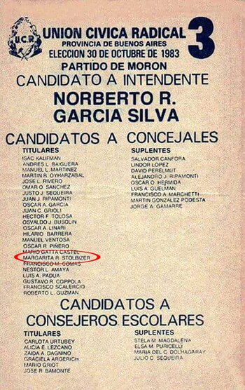 Por último, quisiera contar una anécdota personal: cuando se armó la lista de concejales del radicalismo en el municipio bonaerense de Morón en 1983, yo tenía una militancia muy activa, era abogada, y creía que podía aspirar a ser concejal. Sin embargo, en esos años, la cultura del puntero político (que eran todos hombres) estaba muy arraigada en el partido y tuve que ceder mi lugar a otros. Terminé número 17 en la lista y por supuesto no entré a formar parte del Concejo Deliberante.
