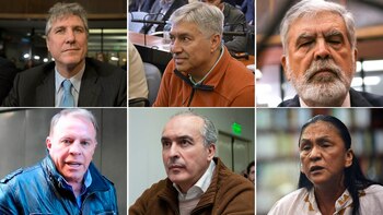 Ricardo Jaime, ex secretario de Transporte y segundo responsable directo de la masacre de Once. Manuel Vázquez, mano derecha de Jaime. Juan Pablo Schiavi, ex secretario de Transporte y primer responsable directo de la masacre de Once. Claudio Cirigliano, ex dueño de TBA y tercer responsable directo de la masacre de Once. César Melazo, juez tuitero defensor de Aníbal Fernández, hoy acusado de capitanear una banda. Miguel Ángel Larregina, coordinador de Yacimientos Carboníferos Río Turbio. Atanasio Pérez Osuna, intendente de Río Turbio. Fabián De Sousa, socio de Cristóbal López. Cristóbal López, míster Casino, Oil, C5N y siguen los éxitos.