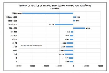 De esa serie surge que el 92% de puestos de trabajo afectados por la crisis se concentró en las empresas que tienen entre 1 y 100 personas. Es decir, claramente pymes.