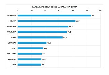 Mientras en Argentina los tres niveles del estado (nación, provincias y municipios) se quedan con el 106% de las ganancias de una empresa, el promedio de Medio Oriente y África del Norte es del 39,1%; y África Subsahariana sube a 48,2% de las utilidades declaradas.