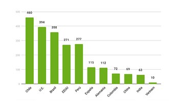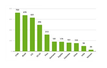 Previsiblemente dos países de la región (América Latina) encabezaron el listado: Chile con 723 subpartidas, Brasil 672; y los desarrollados Unión Europea 631 y EEUU 496.