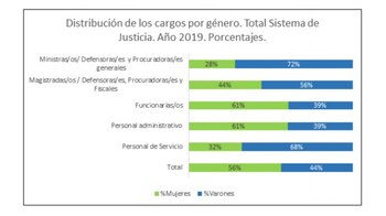 Todos los años, la Oficina de la Mujer dependiente de la Corte Suprema de Justicia de la Nación, a cargo de la vicepresidenta Elena Highton de Nolasco, publica estadísticas sobre acceso a empleos de hombres y mujeres en el Poder Judicial.