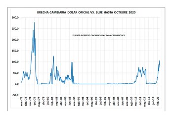 Vale la pena recordar que en cada oportunidad que se disparó la brecha cambiaria, cuando se redujo no fue porque la cotización en el mercado libre bajó hasta los niveles del oficial sino que, por el contrario, se produjo el deslizamiento hacia la cota mayor.