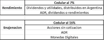 6. En la enajenación de instrumentos, ¿Cuáles quedan exentos? Los Títulos públicos, los Bonos y las obligaciones colocados por oferta pública-. Hay que tener en cuenta que si no tienen oferta pública están gravados al Impuesto Cedular al 5% o 15% - , acciones registradas en la Comisión Nacional de Valores; cuotas partes en Fondos Comunes de Inversión; y la participación en fideicomisos.