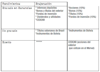 3. ¿Qué rendimientos de Instrumentos de Fuente Argentina están exentos? Los rendimientos obtenidos por colocaciones de dinero en cajas de ahorro bancaria; en cuentas especiales de ahorro; a plazo fijo en pesos sin cláusula de ajuste; en títulos públicos argentinos. También están eximidos las rentas de bonos, obligaciones negociables y las cuotas partes de Fondos Comunes de Inversión colocados bajo oferta pública; al igual que los títulos de deudas por fideicomisos no colocados en oferta pública.