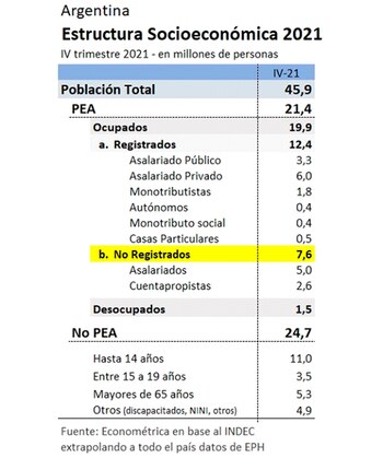 Ya suman 7,6 millones los trabajadores informales, de los cuales 5,0 millones son asalariados no registrados y otros 2,6 millones cuentapropistas no registrados.