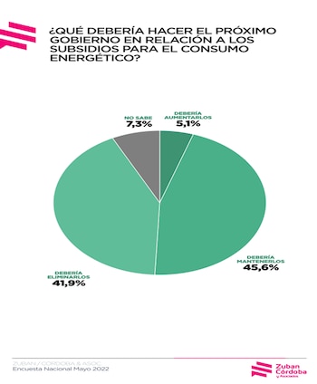 Ahora bien, si se analiza el electorado que votó al Frente de Todos, 78% opina que se deberían mantener los subsidios, 7% que se debería eliminarlos y 10% que se deberían aumentar. De la misma manera, entre los votantes que responden a la oposición, 30% opina que se deberían mantener, 64% que se deberían eliminar y 2% que se deberían aumentar (otra vez grieta).