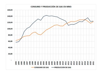 El gráfico muestra claramente cómo crece la producción de gas a partir de las privatizaciones y el nuevo marco regulatorio de los años 90, porque llevó a generar inversiones en el sector y exportar lo que antes se venteaba.