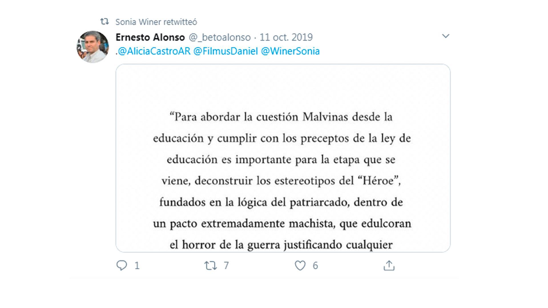 De la misma usina surge la deconstrucción del héroe: “Para abordar la cuestión Malvinas desde la educación (...) es importante para la etapa que se viene deconstruir los estereotipos del “Héroe” fundados en la lógica del patriarcado, dentro de un pacto extremadamente machista…”, era la consigna de un referente del grupo de soldados favoritos del kirchnerismo, citado a su vez por la coordinadora académica de una delirante Diplomatura de Resistencia al Neoliberalismo que se dictaba en Sociales de la UBA en 2020. De paso, sorprende que para el feminismo mainstream el heroísmo sea una virtud exclusivamente masculina...