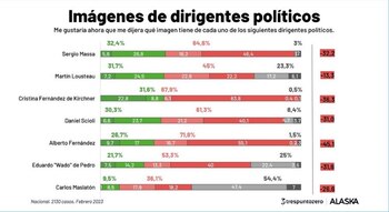 Como es esperable, la construcción de esta particular y alucinada narrativa que pareciera describir una suerte de “país imaginario” en el que vive el presidente, junto al “revival” kirchnerista de denuncia a la corporación mediática-judicial-opositora, tiene como correlato el altísimo nivel de rechazo que, a esta altura, parece ya imposible de revertir. En este sentido, un reciente estudio de Alaska Comunicación da cuentas de que la evaluación de gestión del presidente Fernández se acerca a los más altos de la serie histórica, con 72,3% de imagen negativa.
