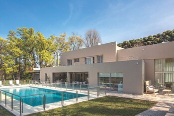 En la reforma de la casa inicial (que incluyó la ampliación de la cocina y el living, entre otros) se procuró conservar la estética original. Las fachadas exteriores, proyectadas en planos superpuestos, están recubiertas por un revestimiento cementicio en tono tostado (Molinos Tarquini) y las aberturas son de aluminio anodizado. La pileta tiene un cerco perimetral de vidrio y acero para preservar la seguridad de los niños de la casa. En la galería cubierta están la parrilla y un comedor externo.