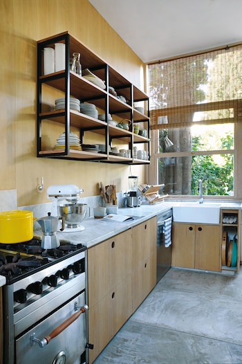 Esta cocina es el resultado de una reforma profunda, realizada por Carola Salomón y Luciano Inaulli, diseñadores de Broca Muebles, en una casa del año '33. La ubicaron en un espacio contiguo al jardín, y mediante vigas nuevas y de demoliciones la integraron al living y al comedor. Todas las aberturas y el piso fueron hechos con pinotea de reforestación, protegida con un aceite que le da a la madera un tono blanco.