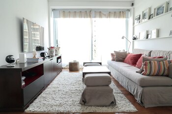 La alfombra a los pies de la cama fue traída de un viaje a Salta. En los baños la apuesta fue bien contemporánea: mesada de mármol negro marquina y grifería de Phillipe Starck en el toilette; pisos y paredes de mármol de Carrara en el principal, además de una bañadera única.