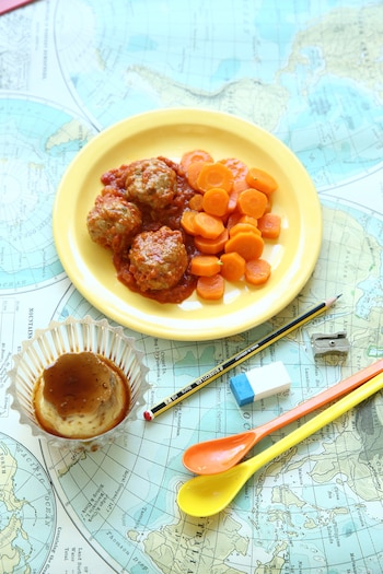 Ingredientes: 100 g de carne picada magra; 2 cdas. de avena arrollada instantánea; 2 cdas. de manzana rallada; ½ taza de salsa de tomates y 1 zanahoria. Preparación: pelá la zanahoria, cortá en rodajas y cociná al vapor. Reservá. Mezclá la carne picada con la avena y la manzana rallada. Condimentá. Integrá bien y formá albondiguitas pequeñas. Dorá apenas en una plancha caliente antiadherente o en la parrilla del horno. Calentá la salsa en una ollita y, para terminar la cocción, incorporá las albóndigas y las zanahorias reservadas.