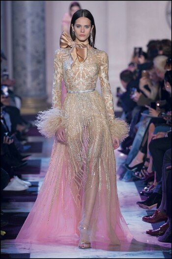 Fiel a su estilo, el diseñador libanés presentó un colección con diseños sexies y súper elaborados. Además, la firma hizo un guiño a las tribus cherokee y apache para ensalzar el saber artesanal de la casa.