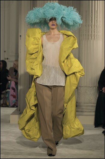 La diseñadora holandesa subió a la pasarela de la semana de la alta costura de París una colección llamada "Juegos de la Naturaleza". Brillaron las siluetas fluidas, volúmenes exagerados, transparencias y satines.