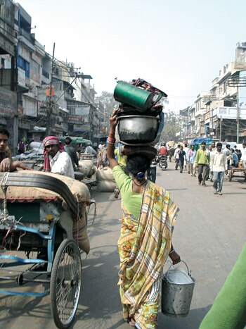 En Nueva Delhi lo que más me impactó fue Chandni Chowk, el corazón de la vieja ciudad donde se despliega un gran mercado mayorista. Allí hay pocas mujeres y las que cruzamos son de las castas más bajas, con enormes bultos sobre sus cabezas.