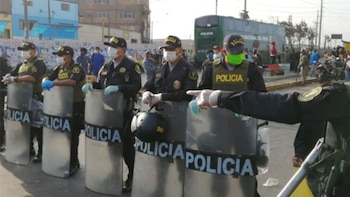 En las imágenes difundidas por América Noticias, se puede observar que los efectivos policiales cuentan con sus implementos de resguardo, tales como cascos, mochilas, escudos e incluso alimentos, como parte de la prevención ante la ola de violencia que se registra al interior del país.