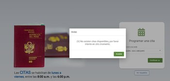 Sin embargo, los usuarios han expresado su malestar, a través de las redes sociales, ya que continúan surgiendo inconvenientes para obtener la cita y señalan que el mensaje “No existen citas disponibles, por favor intente en otro momento”, se repite en cada intento y siguen sin poder registrarse.