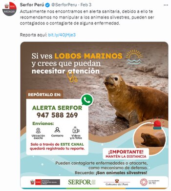 El Serfor indicó que es normal encontrar lobos marinos durante los meses de veranos, pero de avistar a uno de estos animales en las playas no deben ser manipulados ya que podrían contagiar alguna enfermedad, por lo que brindó las siguientes recomendaciones: