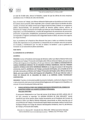 Katy Ugarte, legisladora no agrupada, presentó este jueves una moción de censura contra el ministro del Interior, Vicente Romero, quien fue interpelado por parlamentarios de diferentes bancadas sobre la actuación de la Policía Nacional (PNP) durante las protestas antigubernamentales, el allanamiento de la Universidad San Marcos y la emboscada de narcoterroristas en la que murieron siete agentes hace un mes.