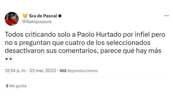 La pareja, desde que apareció la promoción de las imágenes que comprobarían su romance a escondidas, cerró todo tipo de comentarios en redes sociales, donde solo algunos lograron decir algo al respecto. Sin embargo, en Twitter el nombre del exseleccionado nacional y de la modelo se convirtieron en tendencia, pero luego de conocerse los pormenores del viaje romántico los reproches no se hicieron esperan y calificaron de ‘mal hombre’, ‘infiel’ e irrespetuoso al popular ‘caballito’. La expolicía tampoco se salvó de las críticas y le pidieron dejar de lado su fijación hacia los futbolistas.