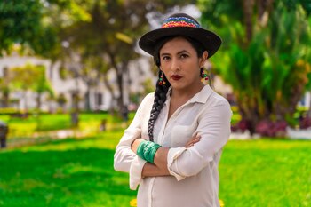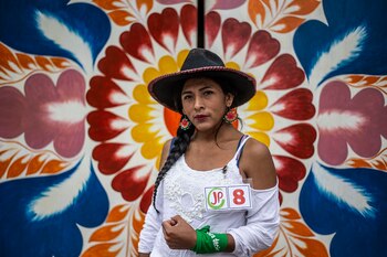 Con un sombrero decorado con colores andinos y una trenza que bordeaba su cuello, recorrió las calles para convencer a los ciudadanos de darle su voto.