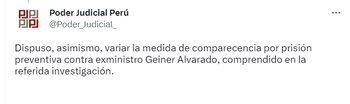 El Poder Judicial dictó este viernes prisión preventiva contra Geiner Alvarado, quien presidió los despachos de Vivienda y de Transportes durante la gestión del expresidente Pedro Castillo. La decisión fue tomada por César San Martín Castro, quien preside la Sala Penal Permanente de la Corte Suprema.