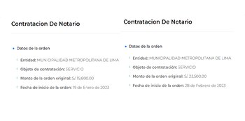 Dos órdenes de servicio del primer bimestre de 2023 dan cuenta de pagos por 43 mil soles. Zambrano ya había contratado con la comuna limeña en gestiones pasadas: entre 2020 y 2021, registra tres órdenes de servicio que suman alrededor de 12 mil soles, tres veces menos de lo ganado hasta ahora.